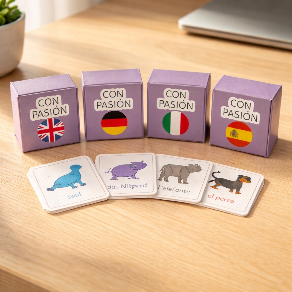 Con Pasión to kolorowa i angażująca gra edukacyjna, która pomaga dzieciom oraz początkującym w nauce języka włoskiego poprzez zabawę. Dzięki prostym zasadom oraz ilustracjom zwierząt gracze w naturalny sposób poznają nowe słownictwo i uczą się kojarzyć słowa z obrazami.